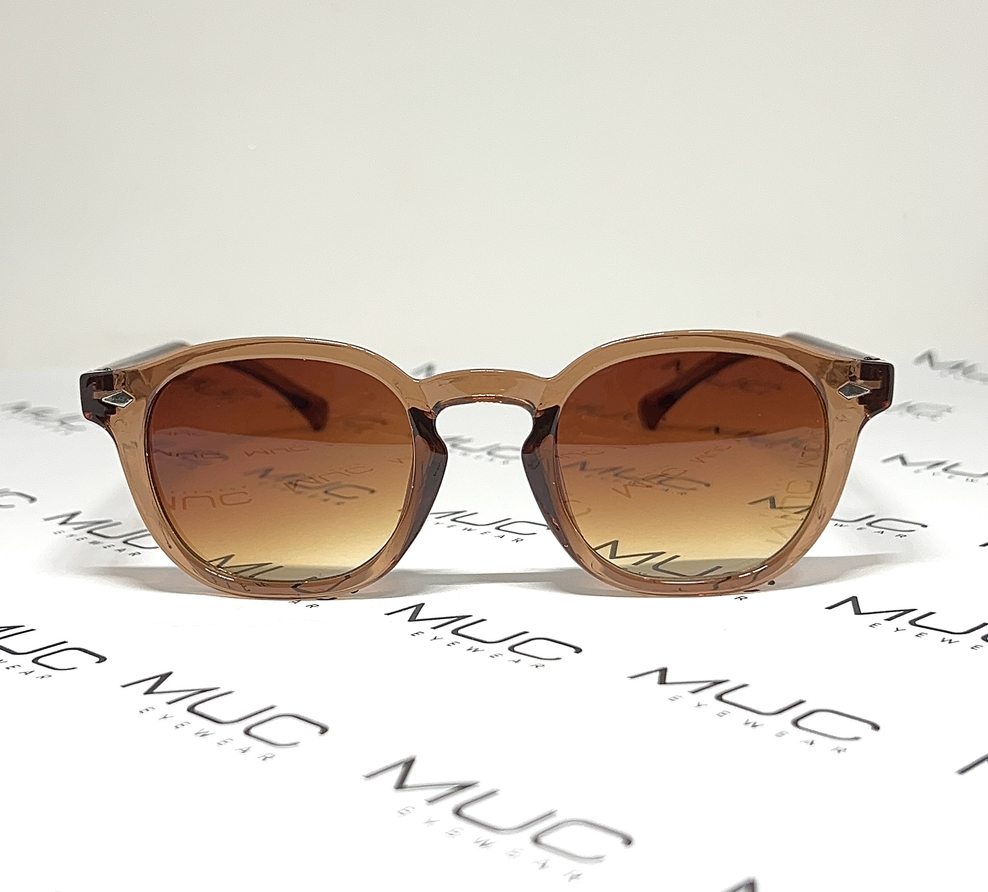 Modelo em acetato translúcido no marrom meio caramelo e lentes marrom!