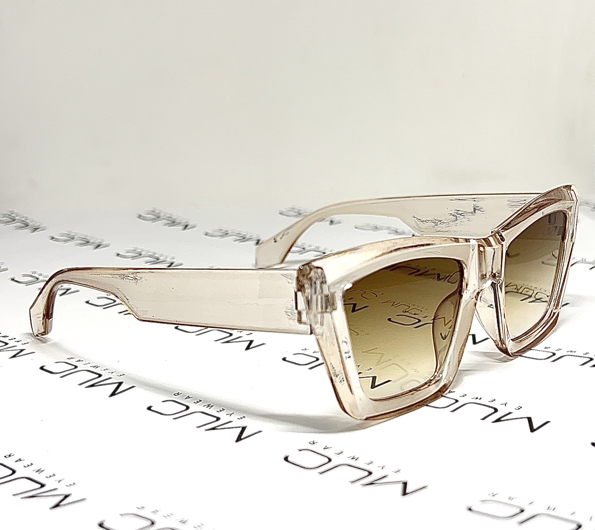 Modelo em acetato transparente e lentes marrom degradê!